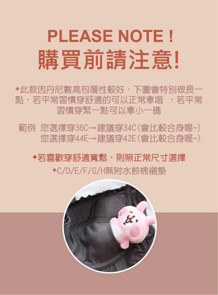 罩杯:34C~44C,34D~44D,34E~44E,34F~44F,32G-44G,32H~40H