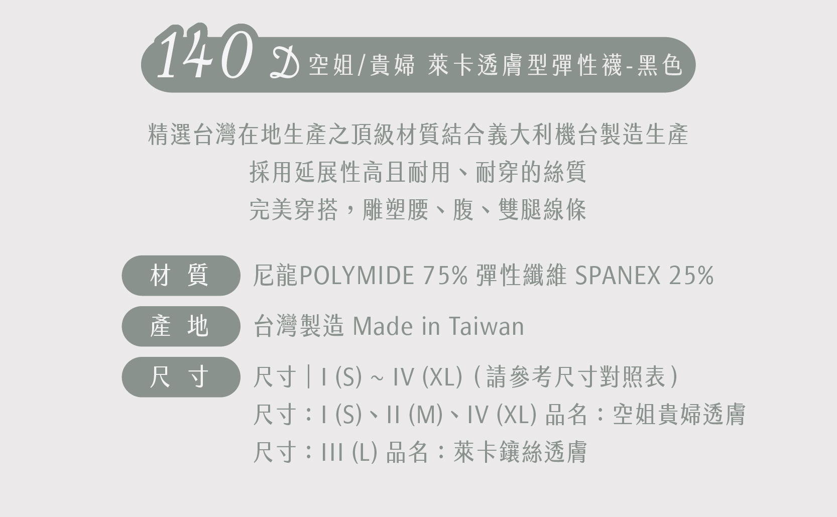 商品:【140D】空姐/貴婦 萊卡透膚型彈性襪-黑色