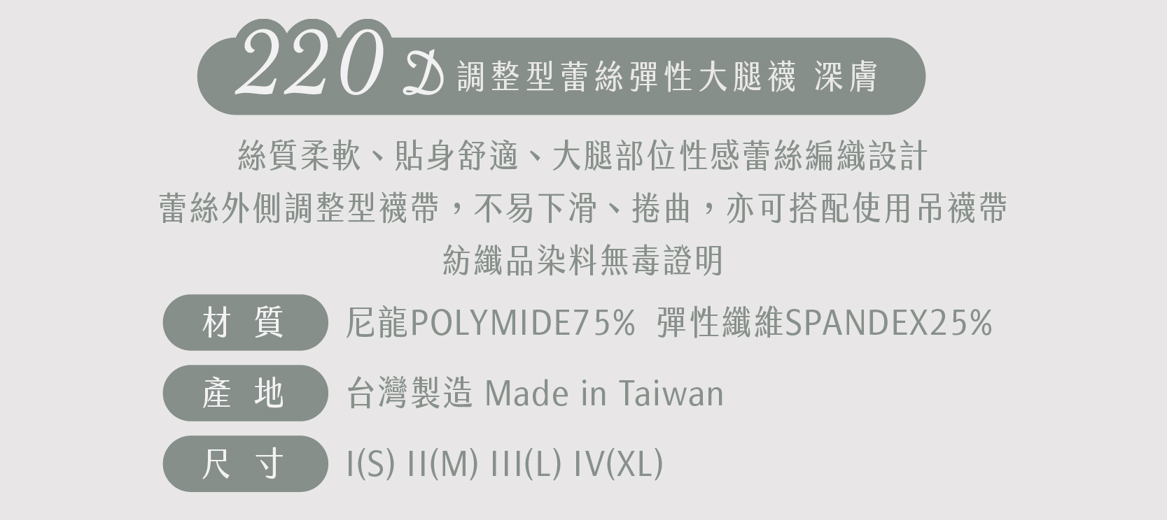 商品:【220D】調整型蕾絲彈性大腿襪-深膚(色號6)
