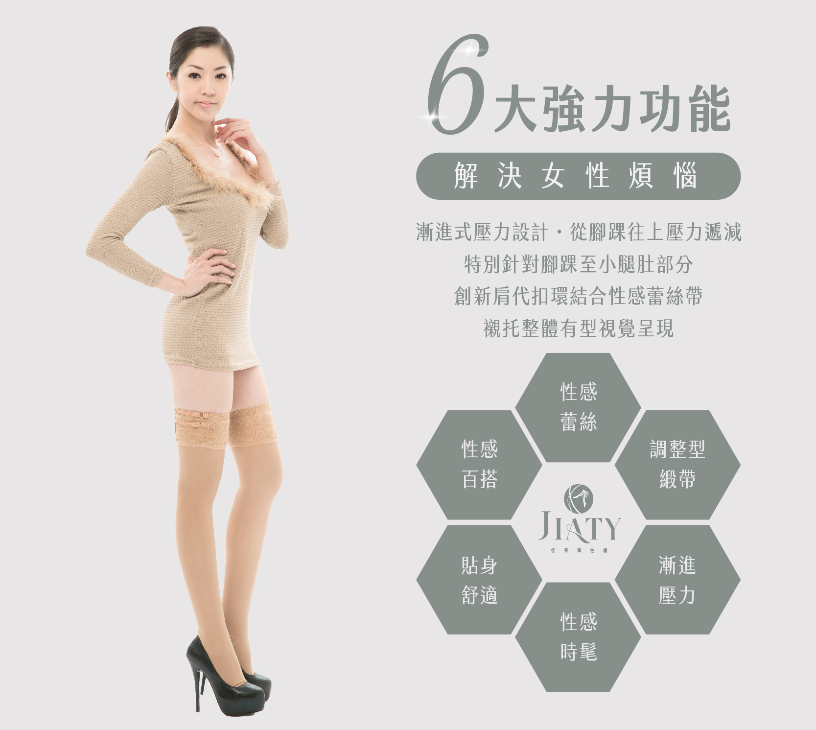 特色:超彈力纖維、顯瘦、染料絲紗均通過無毒檢驗、漸進式壓力、蕾絲性感