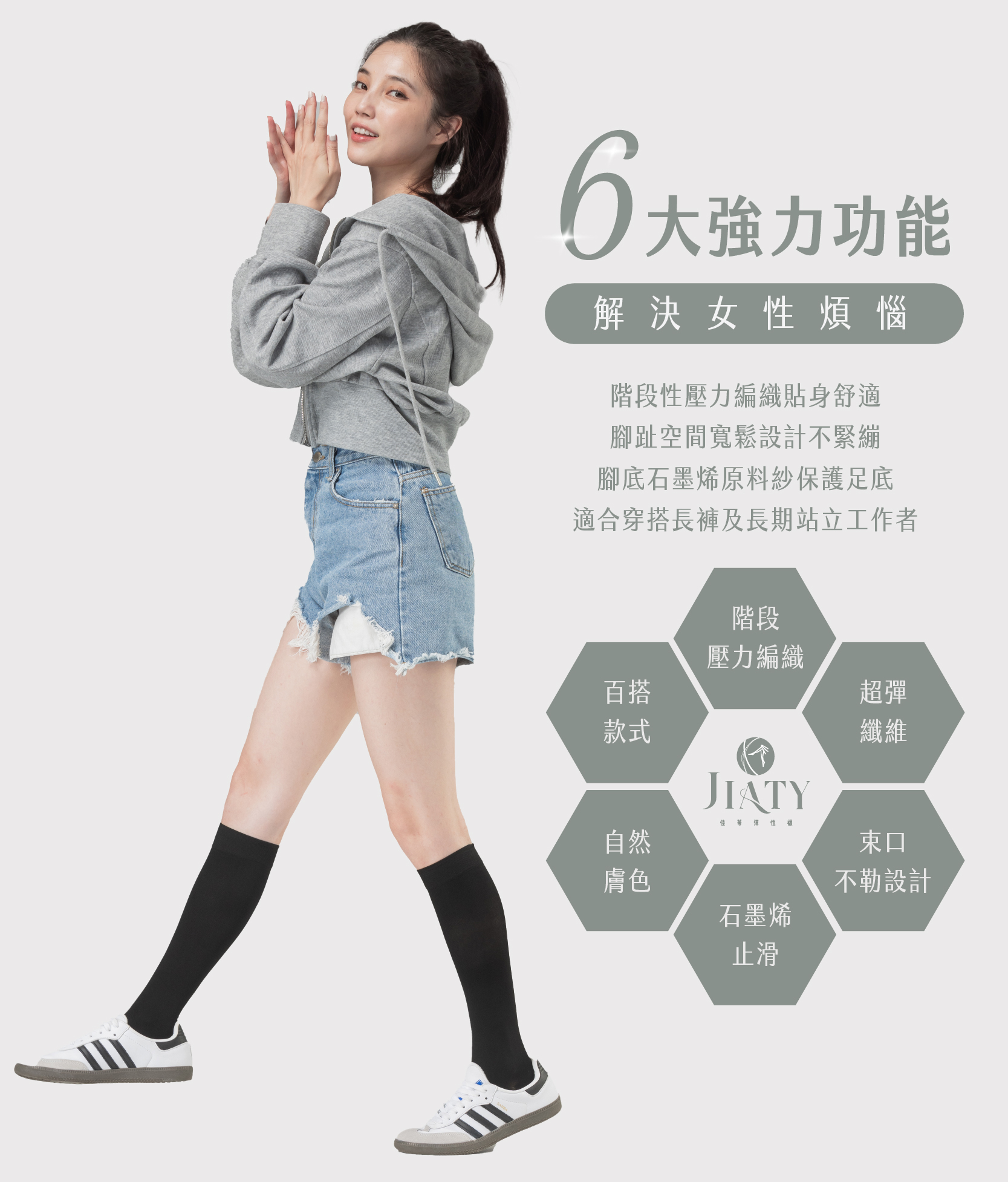 特色:石墨烯纖維、止滑設計、染料絲紗均通過無毒檢驗、漸進式壓力