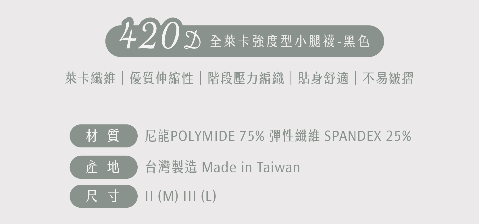 商品:【420D】全萊卡強度型小腿襪-黑色