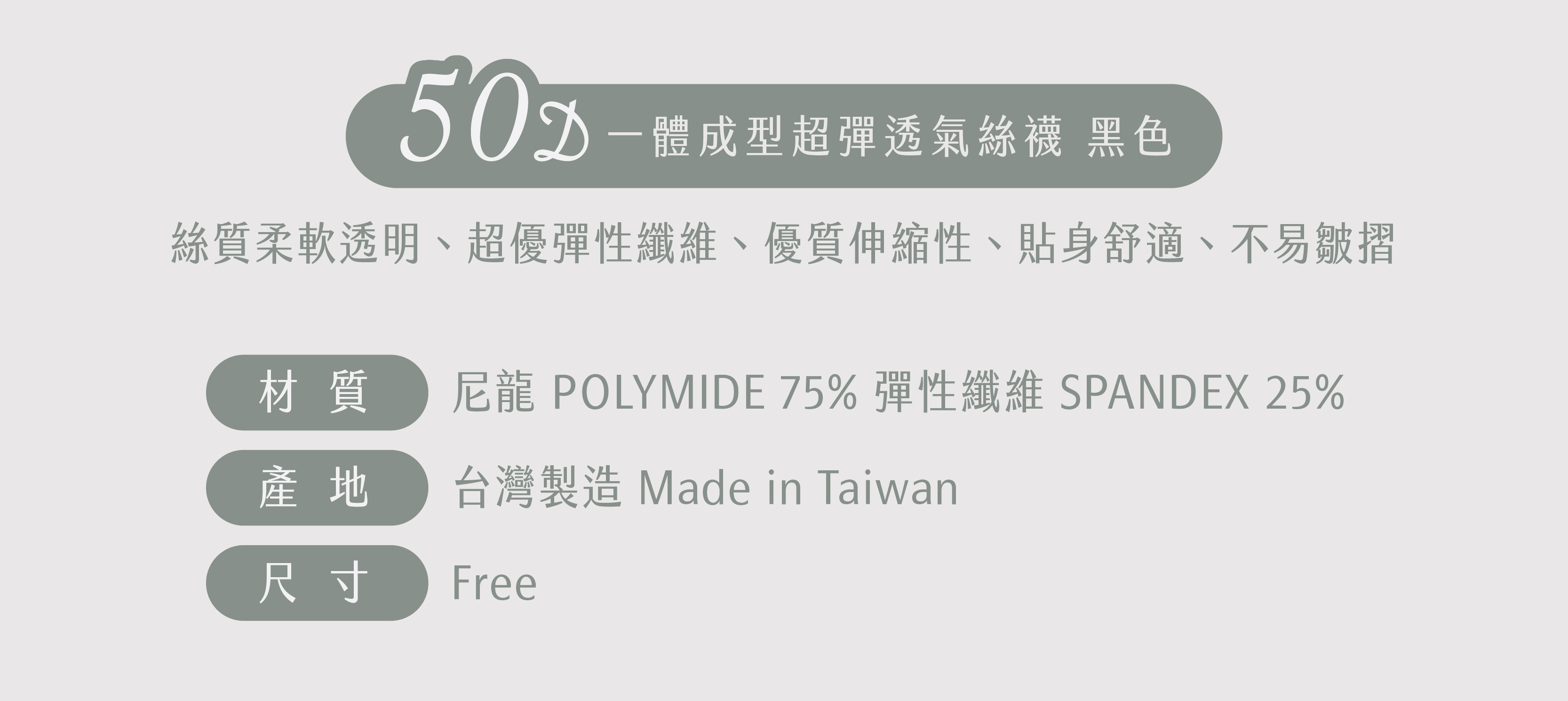 商品:【50D】一體成型超彈透氣絲襪-黑色