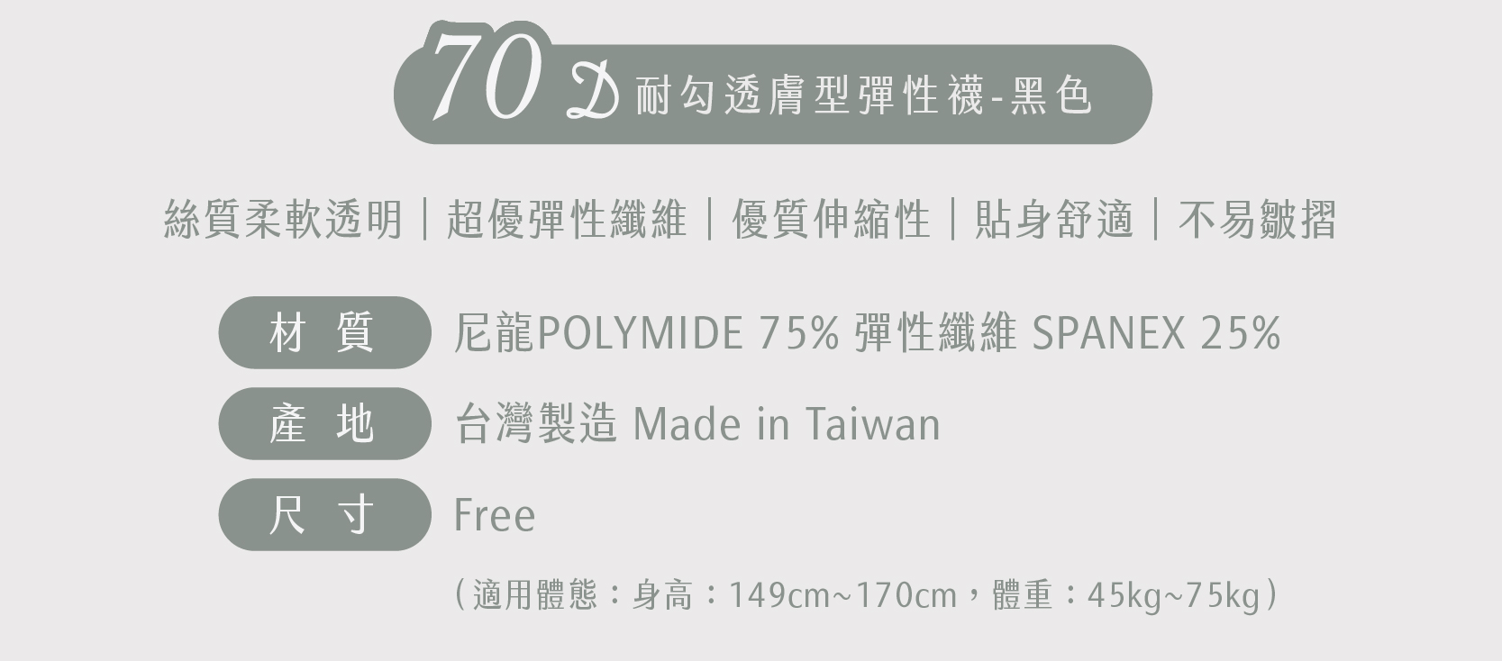 佳蒂【70D】耐勾透膚型彈性襪-黑色