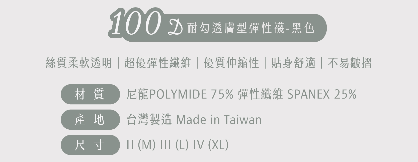 商品:【100D】耐勾透膚型彈性襪-黑色
