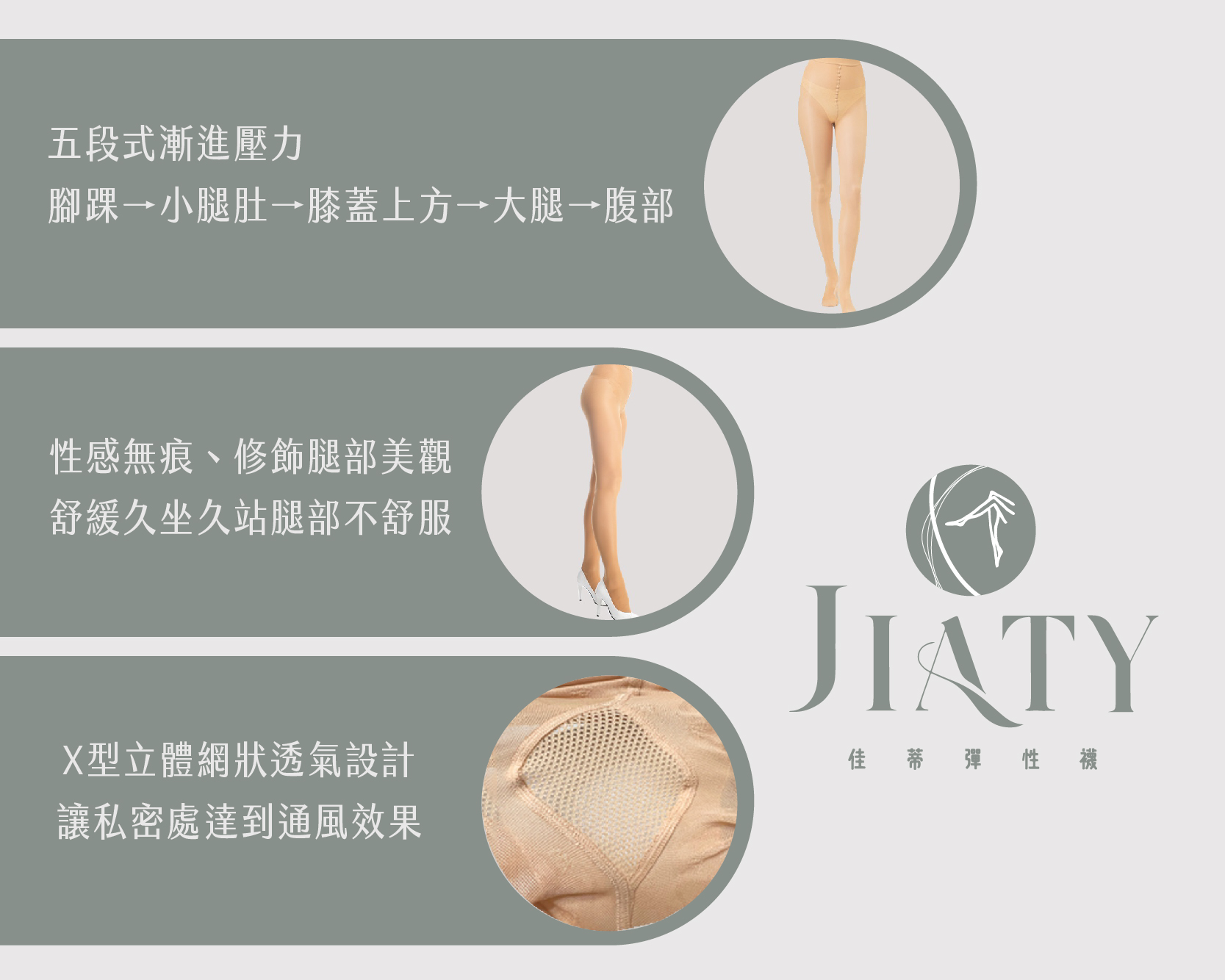 √ 腳踝至小腿肚至大腿,階段性壓力編織