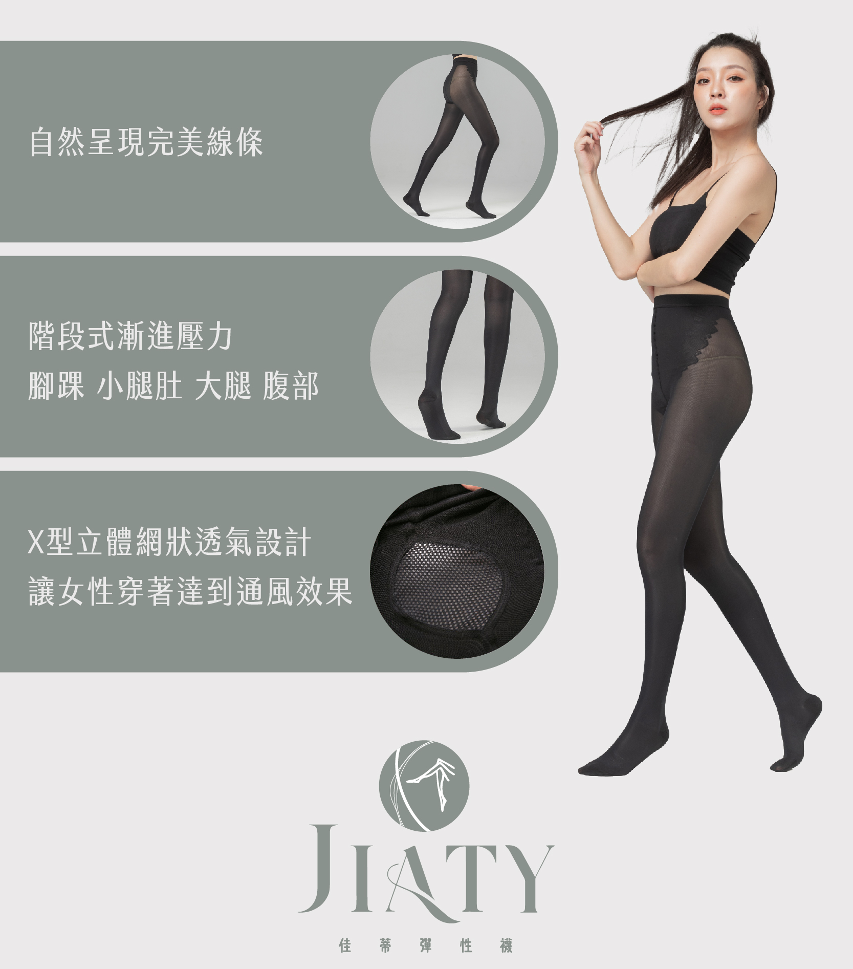 √ 腳踝至小腿肚至大腿,階段性壓力編織