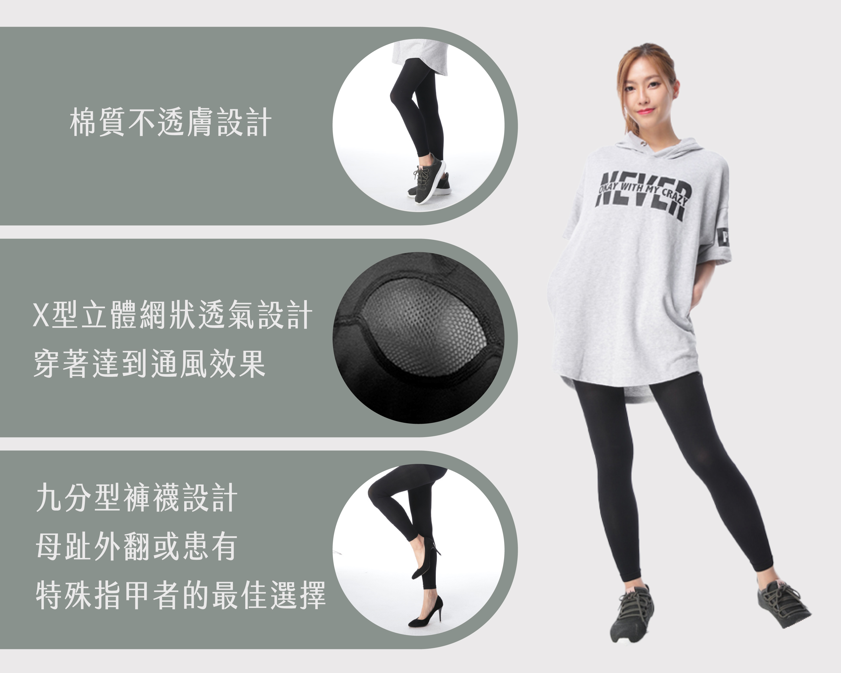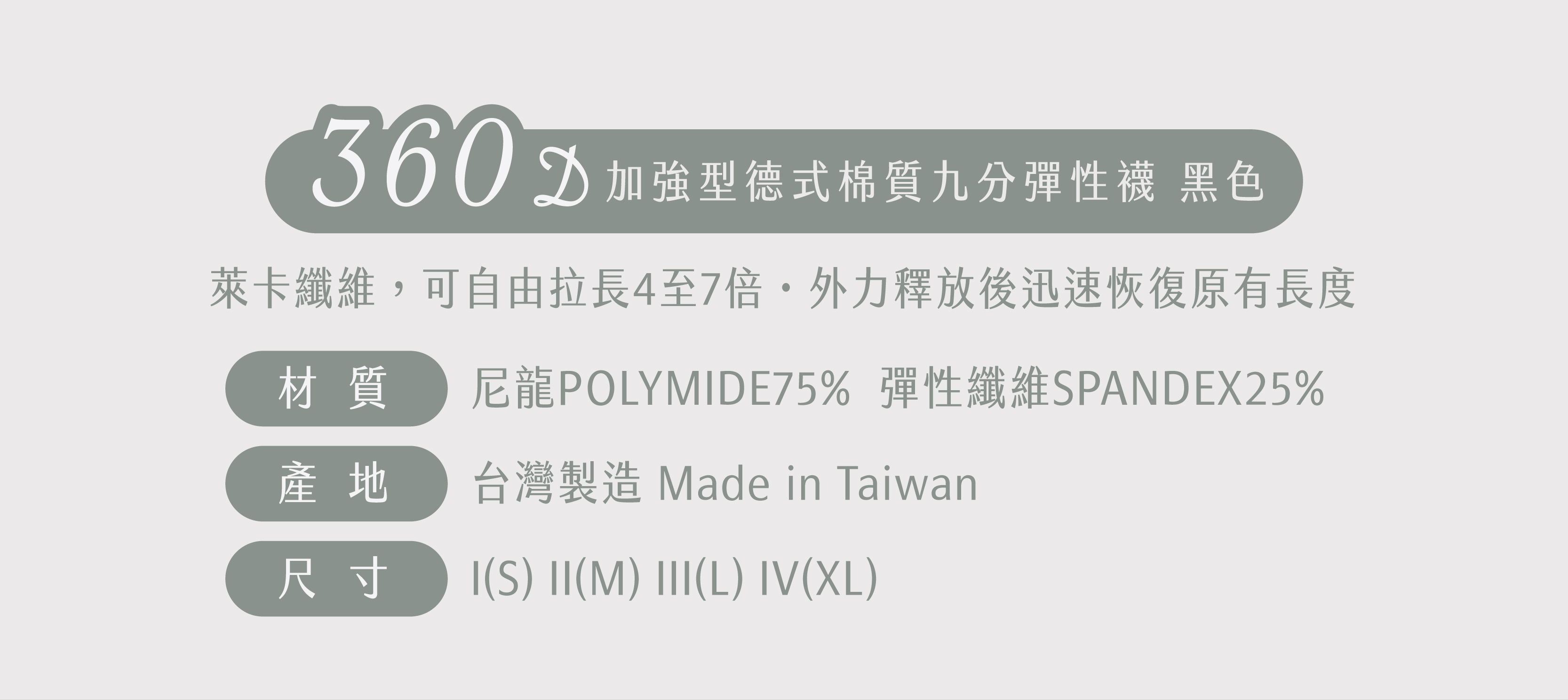 商品:【360D】加強型德式棉質九分彈性襪-黑色